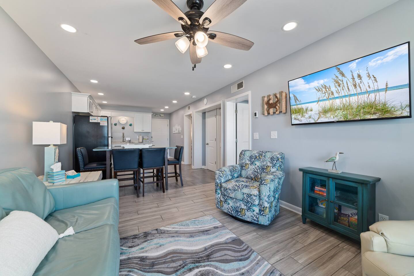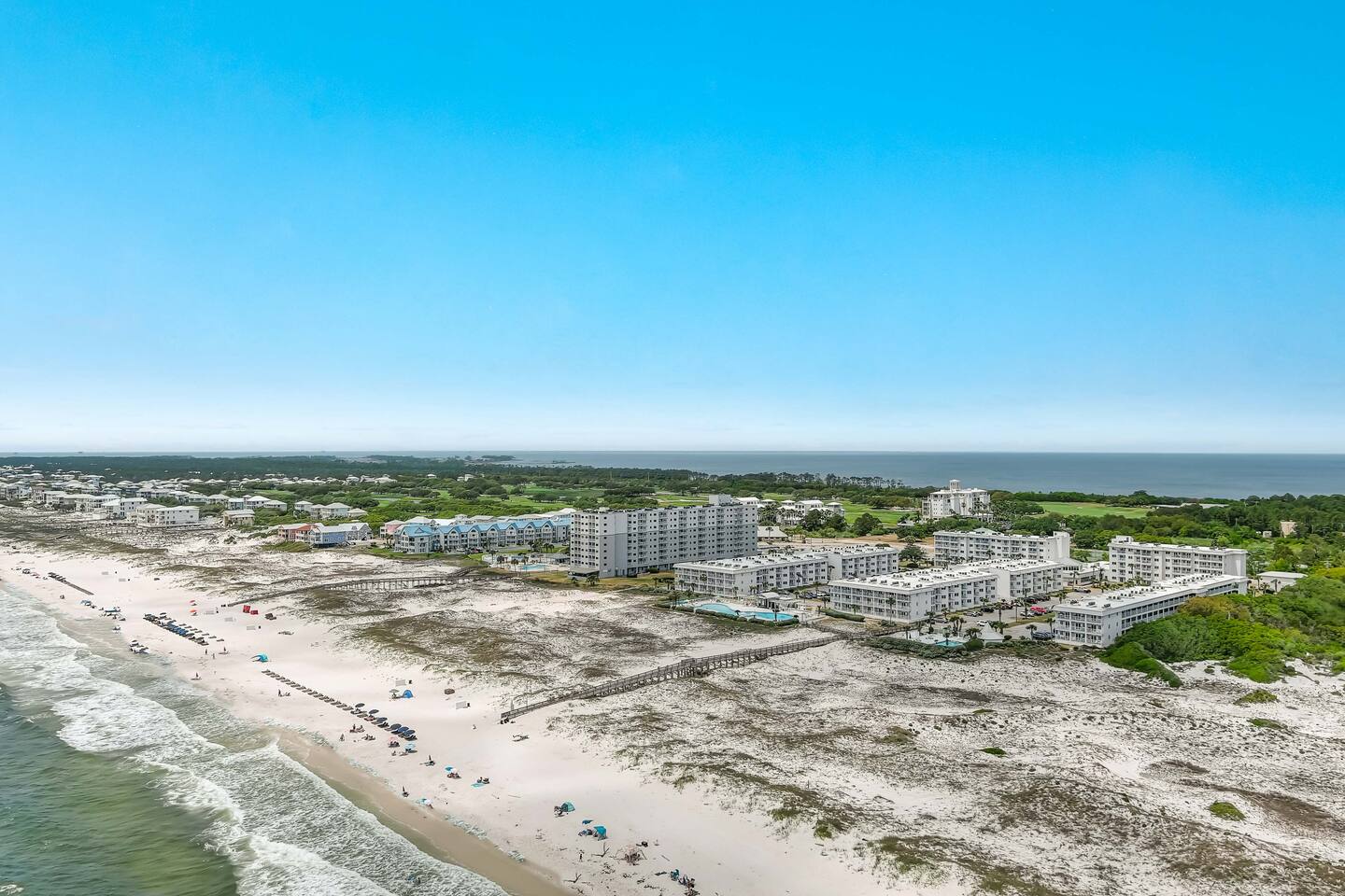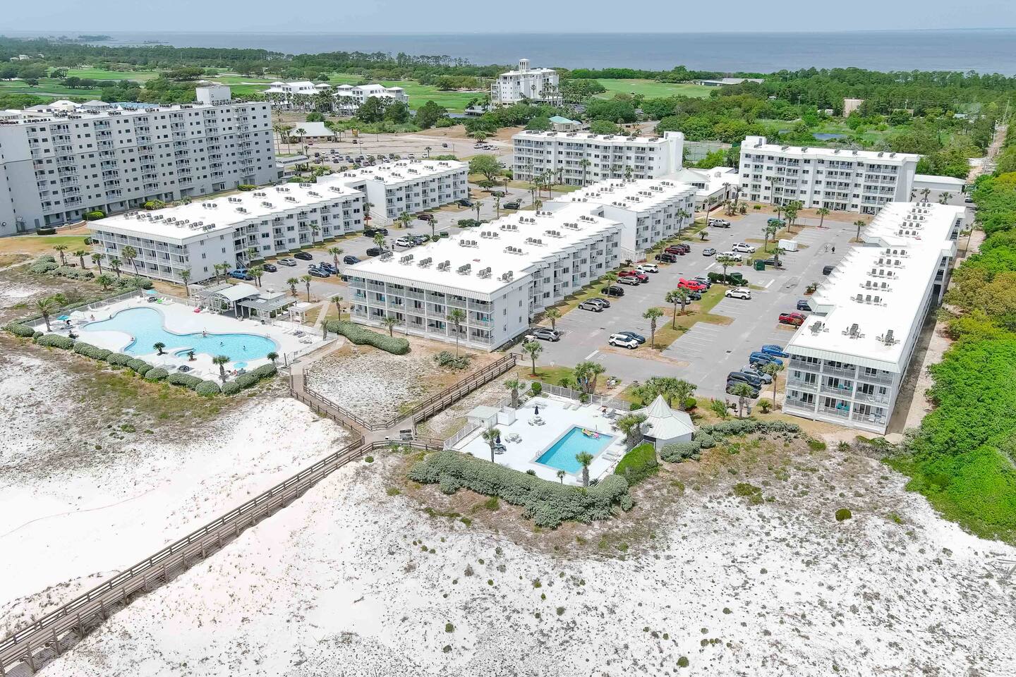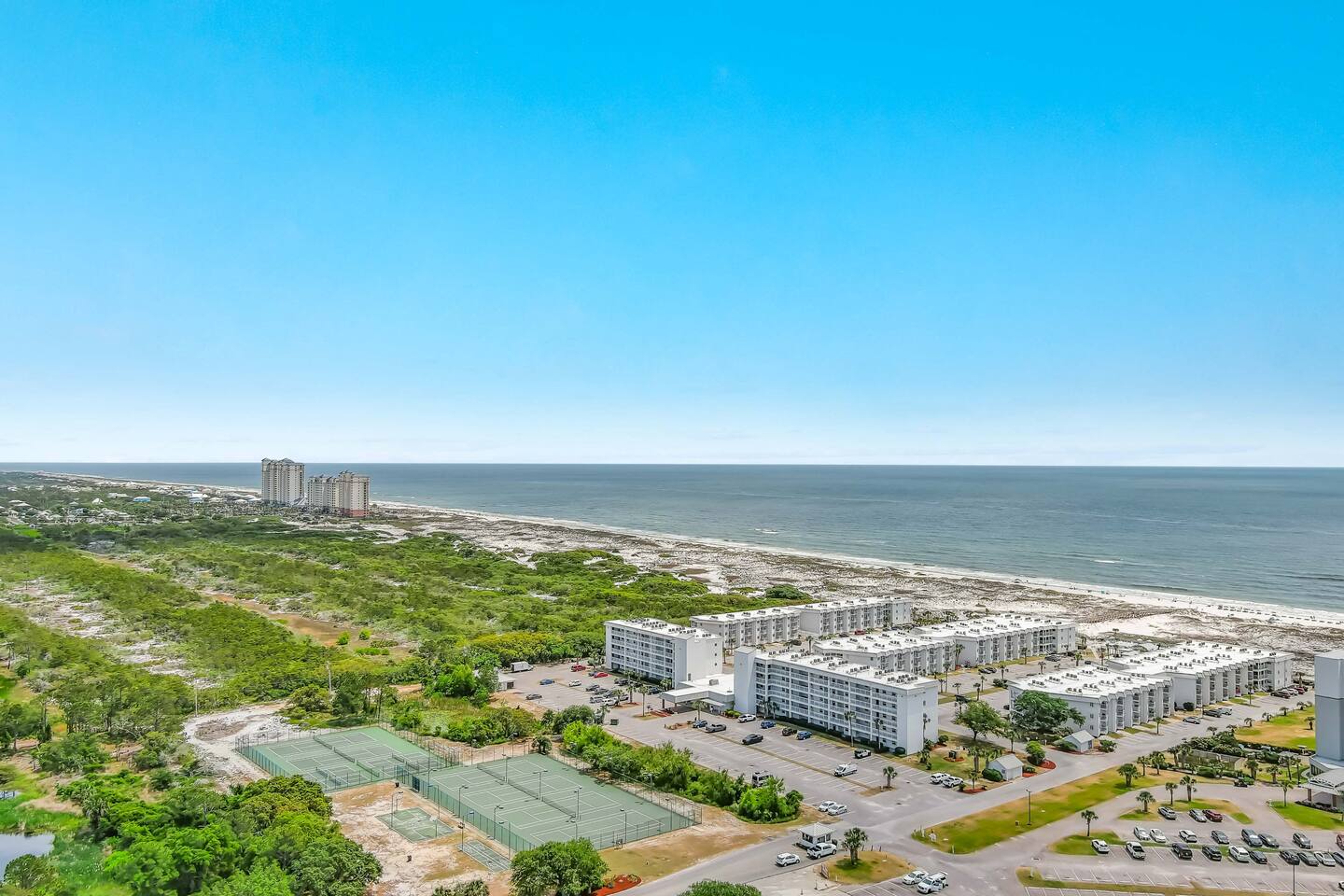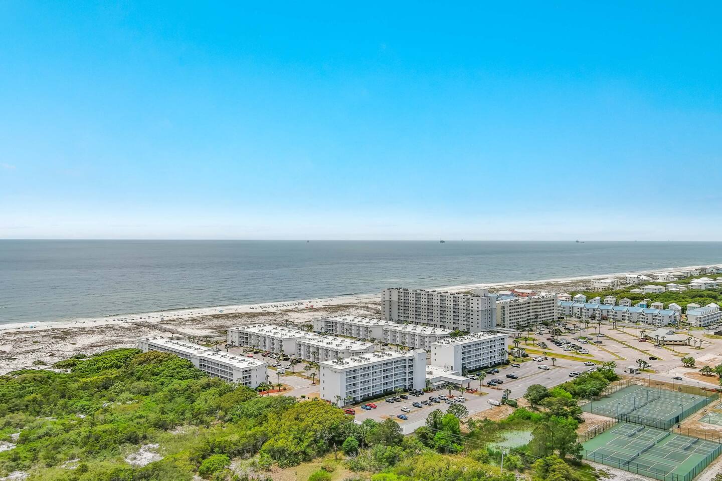 *Condo located on the 2nd floor. Elevator on site! *Gulf Views from Balcony and Primary Bedroom *2 Bedrooms / 2 Full Baths *Smart TVs in all rooms, Free Wifi and Cable TV *Indoor Pool facility with hot tub, sauna, steam room, and gym! KITCHEN: SS Appliances * Keurig Duo * Dishware * Drinkware * Cookware * Bakeware * Crockpot * Small Blender * Hand Mixer * Toaster * Coffee Grinder * Iron & Ironing Board PRIMARY BEDROOM: Gulf View * Queen Bed * Ensuite Bath * Walk-in Shower * Linens Provided * Full-Length Mirror * Ceiling Fan * Smart TV * Bluetooth Speaker/Alarm Clock * Blow Dryer GUEST BEDROOM: Two Twin Beds * Adjacent Full Bath * Bathtub/Shower * Linens Provided * Full-Length Mirror * Ceiling Fan * Smart TV * Bluetooth Speaker/Alarm Clock * Sound Machine AMENITIES ON SITE: Direct Beach Access * Kiva Dunes Golf Course * Indoor Pool * Outdoor Pools * Hot Tubs * Sauna * Gym * On-Site Restaurants * Basketball Court * Tennis Courts * Pickleball Court * Shuffleboard Court * Horseshoe Pit * Sand Volleyball Court * BBQ Grills * Umbrella/Chair Rental Service on the Beach * Elevator * Laundry Facilities * Ice for Purchase * Parking for 2 Vehicles WHERE WE ARE: *Gulf Shores Plantation is nestled in the dunes of Fort Morgan Peninsula *20 minutes west of AL-59 *Pines Park bayside boat launch across the street *8 Mi to Fort Morgan Historic Site *8 Mi to Dauphin Island Ferry *14 Mi to Gulf Shores Boardwalk Area *15 Mi to Gulf Shores International Airport *51 Mi to Pensacola Airport THE IMPORTANT STUFF: *No Pets Allowed on the property as this is a community rule and will be enforced. *No Smoking, vaping, drug use or illegal activity. *All guests must be 25+ (children with parents are allowed) *Message us before booking if you have more than 4 people *No late check-outs or early check-ins *Parking is available for 2 vehicles. You must stop at the guard shack on your way in and get a paper parking pass! *Travel Insurance is recommended as we will not refund due to weather/natural disasters/power outages/other occurrences beyond our control. *Starter set of paper products is provided; you may need to purchase more. *No fires or fireworks allowed on the premises *Rental agreement is required to be signed and will be sent after confirmation.
