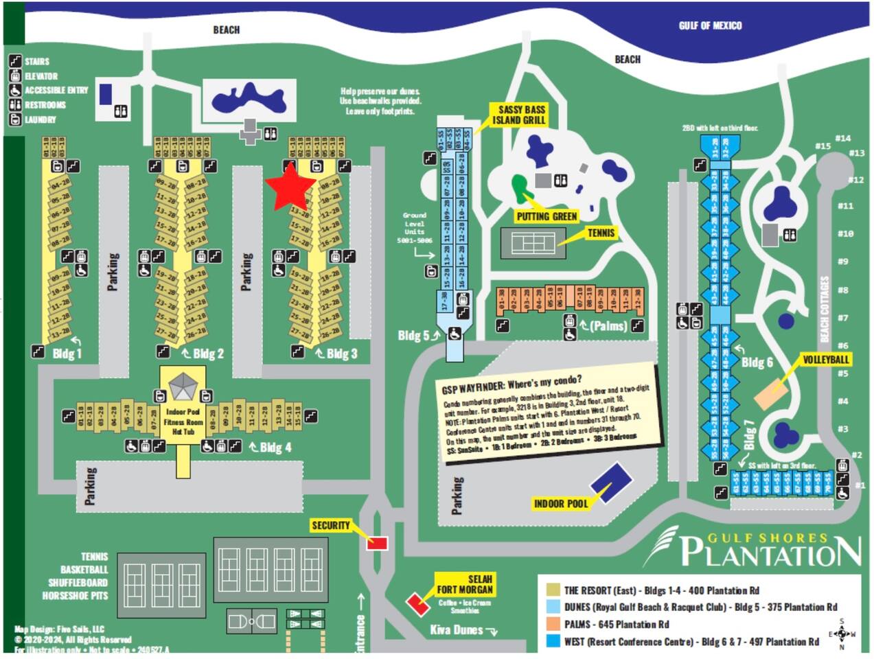 The beach is calling! Nestled in the sugar sand dunes of the Fort Morgan peninsula, the Gulf Shores Plantation at Kiva Dunes Golf Course is a family-friendly beachfront resort community with loads of amenities! There are TWO on-site restaurants serving breakfast, lunch, dinner and drinks. The Sassy Bass is beachside and just a few steps away. The Kiva Grill is at the golf club and has beautiful views of the 18th green. And new in 2024, we have a coffee, smoothie, & ice cream shop just steps away called Selah Fort Morgan!